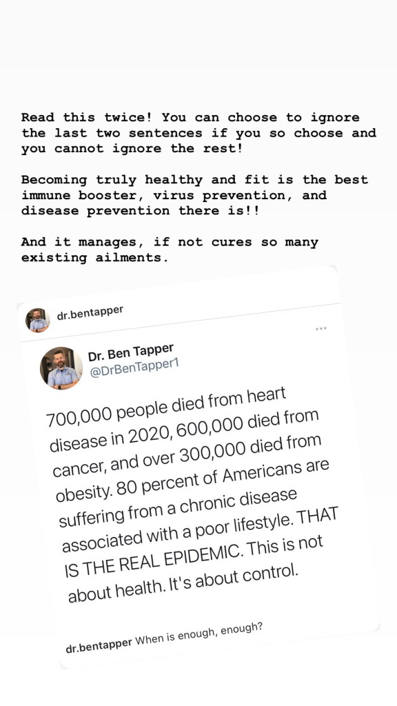 I included a post from a doctor I follow on Instagram. Even thought I personally agree with his last two sentences I will not debate them with you. I will respect your opinion as I hope you will respect mine. We should all be open minded to acknowledging what we have been told is true or are being told is true could be untruth.